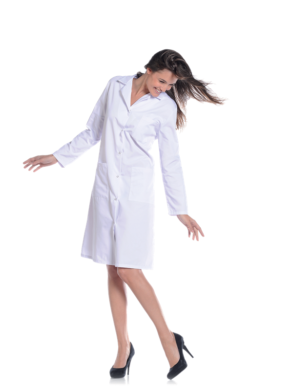Blouse Femme manches longues. 1 poche poitrine. 2 poches basses. Col tailleur. Boutons pressions anneaux métalliques.
