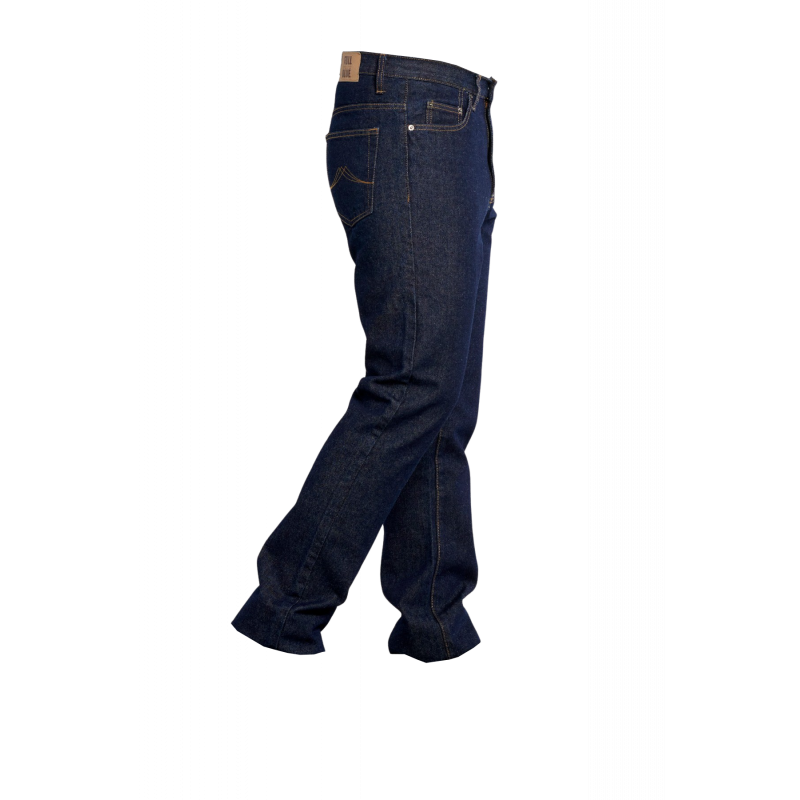 Descriptif : Braguette métal, bouton jean à la ceinture, 2 poches italiennes, 1 poche briquet, 2 poches dos. EJ 83